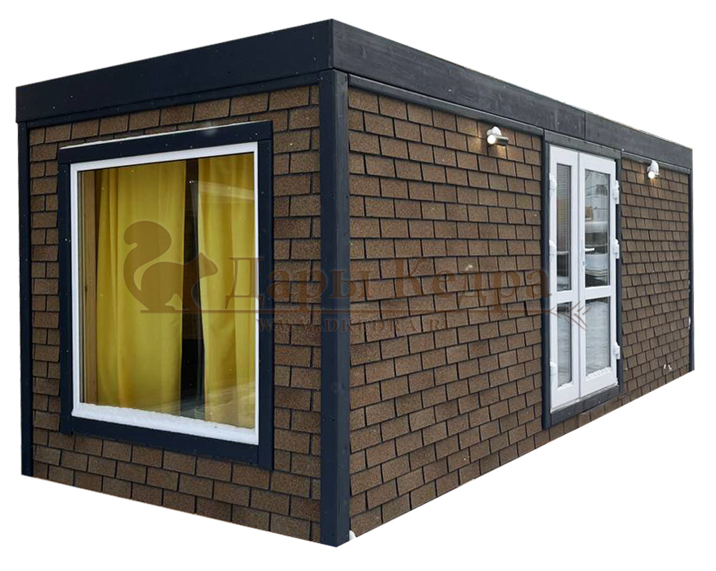 • Утеплённый зимний кемпинг-дом «Панорама» с боковым входом Это утепленный домик прямоугольной формы с панорамным окном и двумя помещениями: жилой комнатой и санузлом с душевой зоной. Может быть изготовлен по готовым стандартам или вашим индивидуальным размерам. Современные материалы, используемые при проектировании, отличаются экологичностью и прочностью. Теплоизоляция стен, пола, потолка выполнена с помощью минеральной ваты, экологичной и устойчивой к поражениям насекомых. Для исключения воздействия неблагоприятных факторов внешней среды снаружи используются гидро- и ветрозащитные пленки. Финишным укрывным материалом стен является сайдинг, имитирующий брус или кирпич.