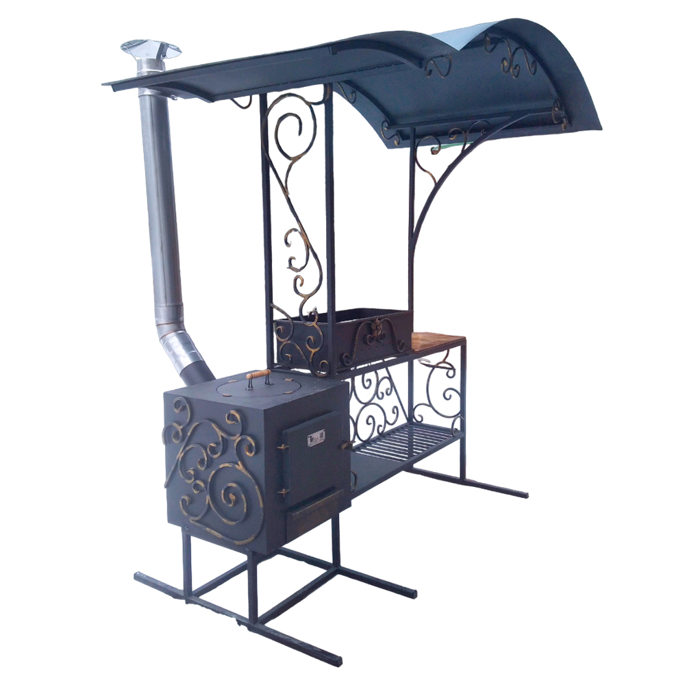 • Мангал кованый Уличные мангалы отличаются современным дизайном, функциональностью и комфортной эксплуатацией. Очень прочные, разборные, поэтому могут быть перевезены с одного места на другое без каких-либо сложностей. Наши дизайнеры и технологи предусмотрели всё, чтобы приготовление пищи на природе было безопасным и быстрым. Конструкция станет украшением любого участка. Кованые элементы расскажут об утонченном вкусе владельца. Мангал состоит из классической жаровни и печи под казан, поэтому разнообразие приготовленных блюд покорит любого. Все элементы изделия покрыты специальной жаропрочной краской, защищающей от коррозии и прогорания. Изделие также имеет столик, где можно разместить необходимые приборы для жарки, а под столиком находится полка для дров. Таким образом, мы предусмотрели всё, чтобы приготовление еды на природе было комфортным, безопасным, быстрым процессом, когда всё под рукой.
