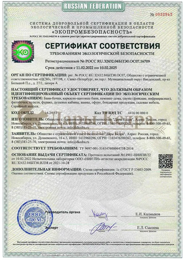 • Доставка фитобочек, кедровых купелей, бань-бочек и другой продукции компании, осуществляется транспортной компанией во все населенные пункты России и СНГ.