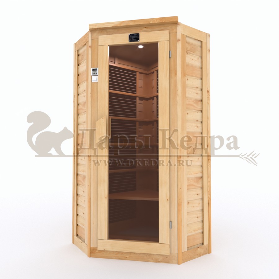 Одноместная угловая инфракрасная сауна кабина из кедра с карбоновыми излучателями Это специально оборудованная кедровая кабина для прогрева тела человека сухим теплом. Воздух в таких парных не нагревается. Инфракрасные лучи воздействуют на тело, равномерно прогревая мышцы, суставы и органы. Карбоновые излучатели, встроенные в стены кабины, обладают мягким прогревом, что полностью исключает возможность ожога. Работает кабина за счет электричества. Установка сауны в угол, позволяет рационально использовать пространство помещения. Подходит как для домашнего использования, так и для коммерции. Обращаем Ваше внимание что в стандартную комплектацию входит трапик для ног, но вы можете его заменить на цельный пол совершенно бесплатно! Целебная древесина кедра и инфракрасные лучи благотворно влияют на организм человека в целом. При регулярном использовании инфракрасной сауны укрепляется иммунитет, улучшается кровообращение и состояние кожи, выводятся токсины.